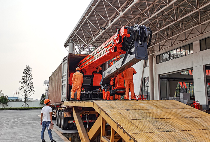 7、小臂變幅角度達(dá)240°,可回勾,均可集裝箱運(yùn)輸。