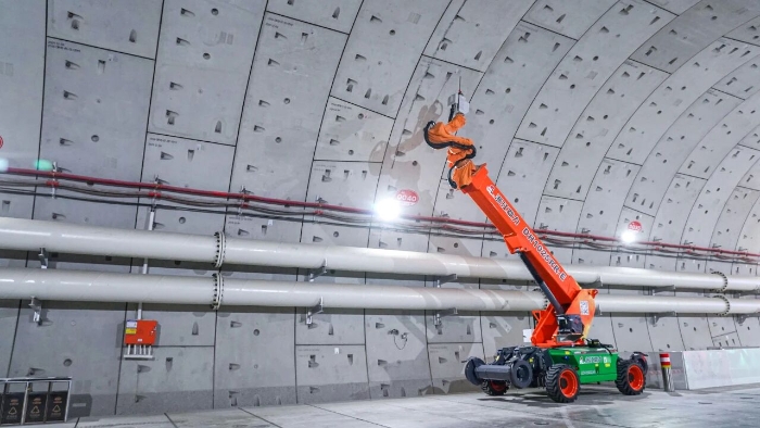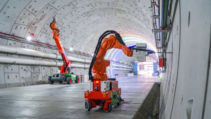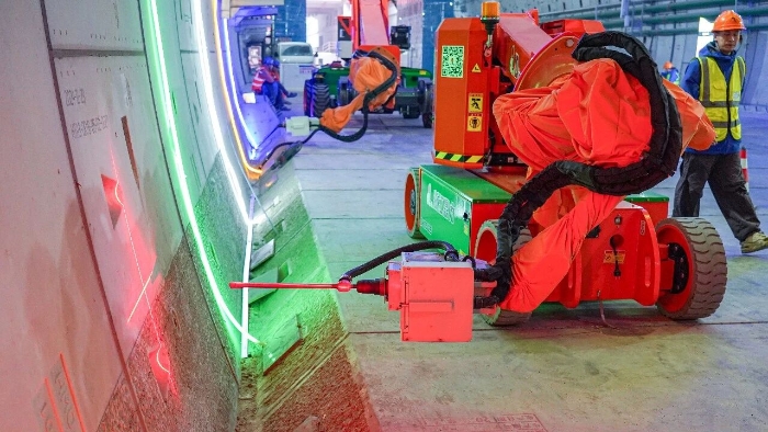 近期,隨著項(xiàng)目推進(jìn),隧道內(nèi)部開始進(jìn)入機(jī)電安裝、管線敷設(shè)階段,需在堅(jiān)硬的混凝土管片上進(jìn)行數(shù)以萬計(jì)的高精度鉆孔。粉塵控制、高空作業(yè)安全、毫厘不差的精度要求,在密閉、富水的超長隧道空間中,被無限放大。